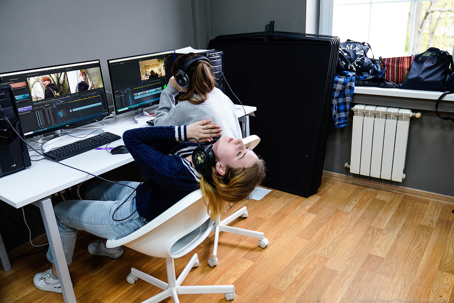 Чердак многоэтажки где-то в Балтрайоне. Потолки низкие, окна крошечные — свет туда еле добирается. Под ногами — мёртвые голуби и яйца птиц. Девочка лет тринадцати подсвечивает их телефоном: эти треснули, а вот эти ещё целые. «Новенький труп, вчера его не было, — говорит она. — Люблю это место, мёртвые голуби — отличные собеседники». Всё это — кадры из будущего фильма про калининградскую школьницу Нику. Его снимает её новая подруга Марфа. Обе они — участницы мастерской документального кино режиссёра Ольги Привольновой. Эта мастерская задумывалась как док-хаус, аналог понятных для подростков тикток-хаусов — домов, где блогеры живут вместе и создают контент для соцсетей. Участники «крайсветовского» док-хауса должны были находиться с утра до вечера в Школе креативных индустрий и снимать 60-секундные документальные зарисовки.