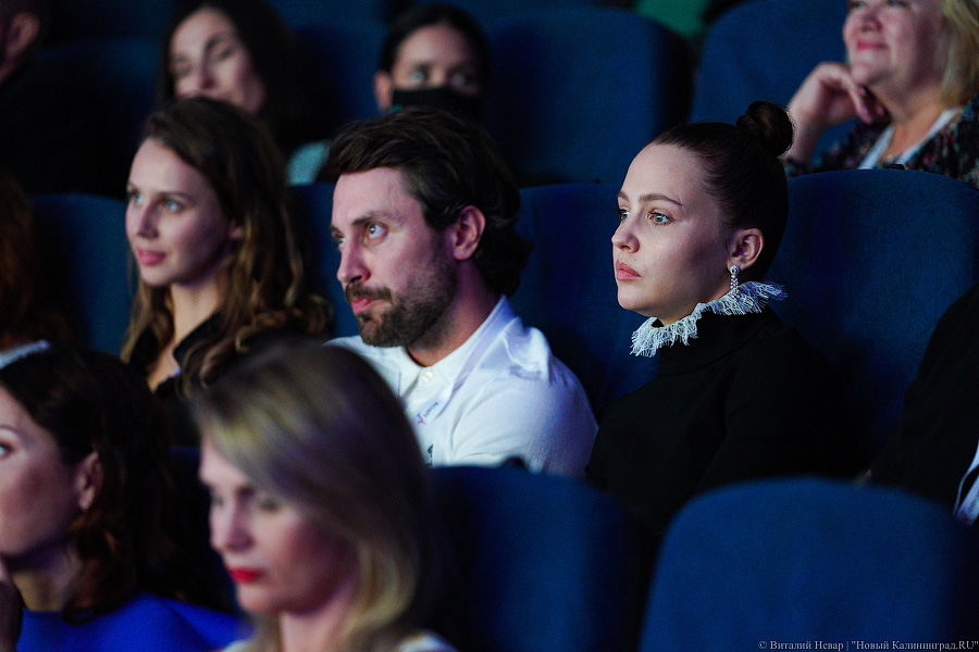 За несколько часов до старта актриса *.com/volkovihome" rel="nofollow noopener" target="_blank">Екатерина Волкова (исполнительница главной женской роли в телесериале «Воронины») гуляет по Калининграду и записывает сторис для своего инстаграма. «Когда мы прилетели, был дождь, — рассказывает она подписчикам. — А [сейчас] на самом деле яркое солнце, небо чистое, и сегодня дорожка будет идеальная». Не стоит так доверять калининградской погоде. К тому моменту, когда у кинотеатра «Заря» развернут красный ковролин, небо уже затянет, и Екатерине Волковой придётся позировать фотографам в струящемся белом платье под накрапывающий дождь.
