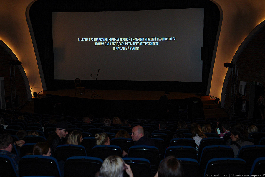 «В целях профилактики коронавирусной инфекции и вашей безопасности просим вас соблюдать меры предосторожности и масочный режим», — напрасно обращается к гостям экран кинозала. Церемонию открытия ведёт актёр Юрий Стоянов. Он обещает быть кратким, шутит про то, что Калининградская область — единственный регион, соблюдающий социальную дистанцию по отношению к России, здесь «мухи садятся на янтарь, а не на то, что обычно», и безбожно хвалит губернатора Антона Алиханова: «Вам 34 года, в вашем возрасте я возглавлял вот такой вот несчастный „Городок“, а вы — целый регион!». Вообще частоту доносящихся со сцены заискиваний с губернатором хочется отрегулировать законодательно. Если играть в drinking game, по правилам которой нужно выпивать каждый раз, когда слышишь комплимент главе региона, можно напиться минут через семь. Хорошо, что церемония открытия, и правда, оказалась быстрой и заняла менее получаса. После — показ фильма «Бумеранг» с представлением режиссёра Петра Буслова и закрытая вечеринка в «Заре».