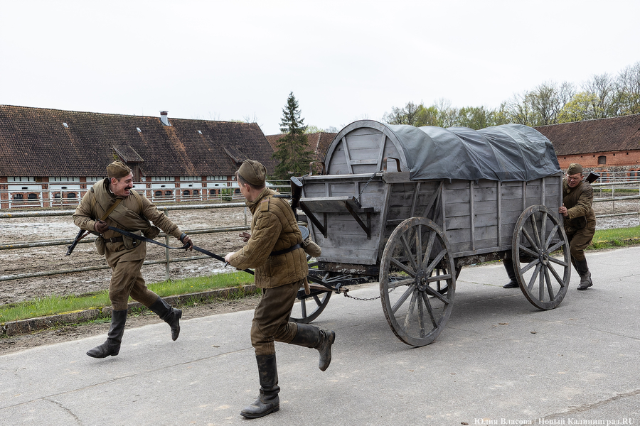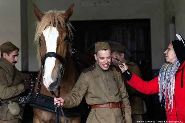 И, действительно, на площадке было довольно тихо: военной техникой и массовыми сценами (ранее сообщалось, что в них собирались задействовать более 400 человек) лошадей решили не пугать. Пару эпизодов подсняли с Александром Алексеевым, сыгравшим Теркина, а также с его однополчанами. Был и драматичный момент освобождения остарбайтеров — угнанных на запад советских жителей.