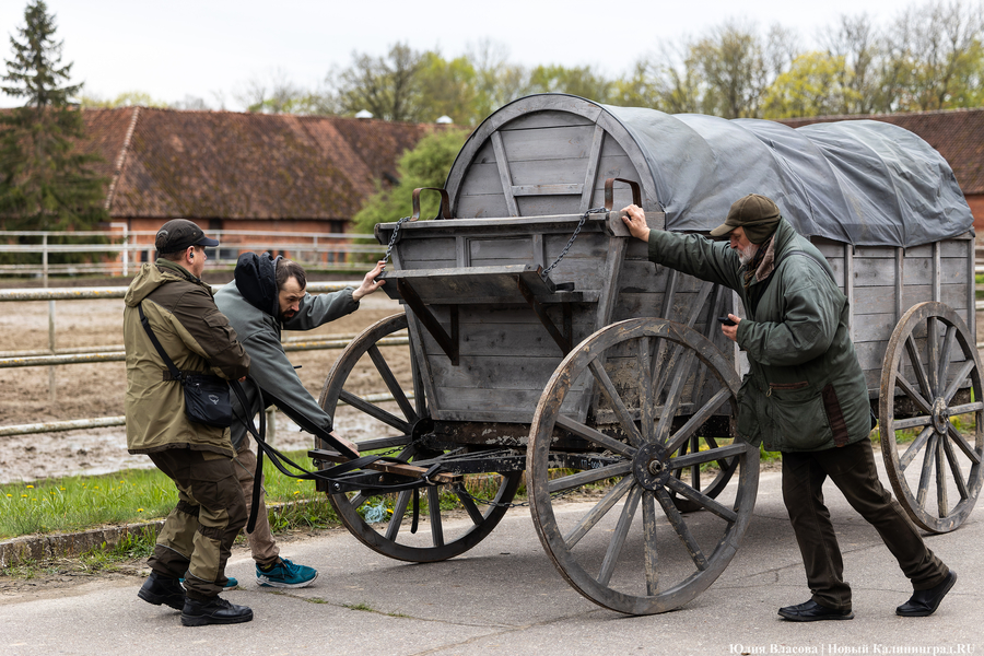 Съемки проекта Карена Геворкяна «Василий Теркин» переместились из поселка Ясное под Черняховск, а именно в конюшни Георгенбурга. Здесь, как уверяют представители кинокомпании «Русское поле», съемочная группа поработает над одной из финальных сцен картины. Твардовский бы по этому поводу сказал: «Теркин, Теркин, в самом деле, час настал, войне отбой».