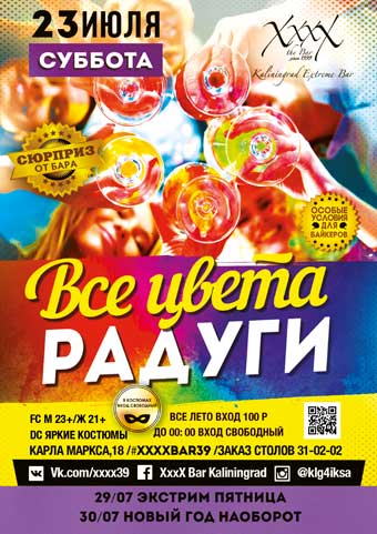 Вас ждет незабываемое погружение в атмосферу бесконечного веселья и приятной компании! Поэтому одевайтесь в яркое, берите друзей, отличное настроение — и сразу на удивительную вечеринку, где нет места грусти! Зато есть веселье без стеснения, танцы на барной стойке и время до утра, чтобы запомнить эту ночь!