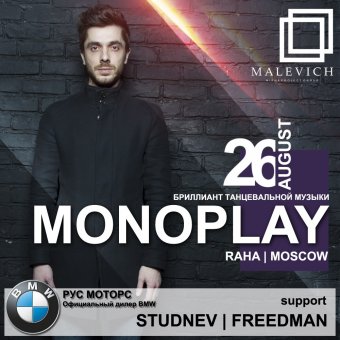 В эту ночь для вас играет талантливый музыкант и DJ Monoplay Moscow в Malevich Lounge, признанный профессионал в мире электронной музыки! Мы приглашаем вас оценить модельный ряд BMW и провести свой отдых в лучших ночных заведениях города, погрузится в максимум комфорта! Управляйте миром в роскошной атмосфере. Только этой ночью особые привилегии на приобретение автомобилей BMW у официального дилера «Рус Моторс» в Калининграде».