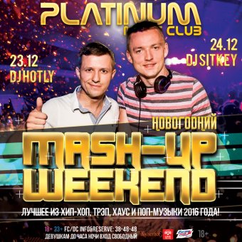 Последний в этом году уикенд мы посвятим хитам, вышедшим в 2016-ом: лучшее из хип-хоп, трэп, хаус и поп-музыки по мнению наших резидентов на двух танцполах клуба — лучшего окончания года не придумать! В пятницу самый большой танцпол города раскачивает DJ Hotly, в субботний прайм-тайм вертушки оседлает DJ Sitkey!
