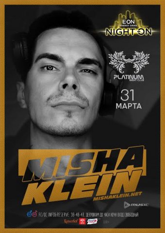 У нас в гостях один из самых известных российских диджеев, играющих музыку стилей Nu Disco, Deep House и Indie Dance. Более сотни ремиксов и сольных работ, а также коллаборации с такими артистами, как No Hopes, Ivan Spell и Vika Grand давно попали в плейлисты самых требовательных меломанов планеты, а подкаст «Misha Klein — Deep» не покидает чарты iTunes. Не пропустите сет Миши Кляйна в ночном клубе «Platinum»!
