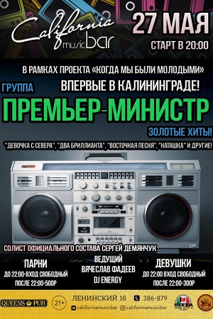Полноценная концертная программа группы «Премьер-министр» включает в себя все золотые хиты, начиная со времен образования группы. Вы услышите главные песни кумиров начала 2000 — х, в оригинальном исполнении, которые давно стали визитной карточкой артистов — «Два бриллианта, три карата» , «Наташка» , «Девочка с севера», «Восточная» и многие другие.