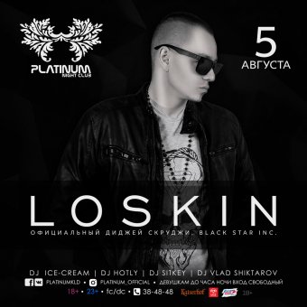 За вертушками клуба «Platinum» официальный диджей Скруджи (Black Star Inc.) и наш бывший резидент — Loskin! Артем знает как устроить «взрыв в темноте» и вы просто обязаны стать частью этого безумия!