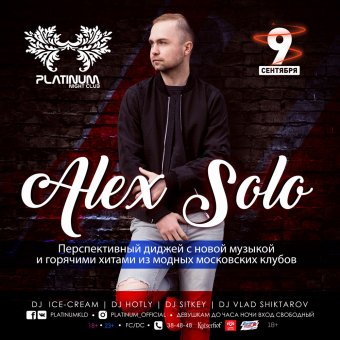 За вертушками клуба «Platinum» перспективный диджей и промоутер с десятилетним стажем, не так давно перебравшийся в Москву. Новая музыка и горячие хиты прямиком из московских клубов — это будет интересно!