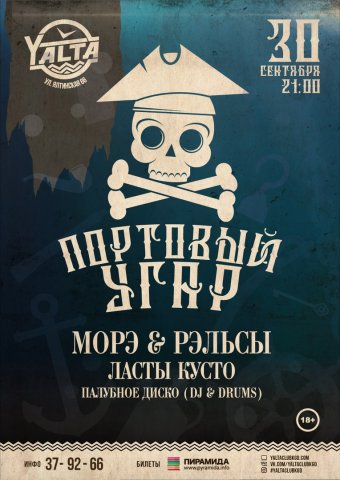 В последнюю субботу сентября, на борту импровизированного круизного лайнера «Yalta», состоится веселая и шумная тусовка «Портовый Угар», уже так знакомая и полюбившаяся многим поклонникам хорошего кутежа. Все традиционно: форма одежды — морская, музыка — рокнрольная, матросы и веселые девицы…