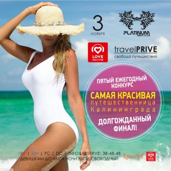 Турфирма «Travel Prive» и «Love Radio — Калининград» представляют долгожданный финал пятого ежегодного конкурса красоты «Самая красивая путешественница Калининграда». В эту ночь мы узнаем, кому из семи финалисток достанется звание победительницы и главный приз — путешествие в Испанию на двоих!