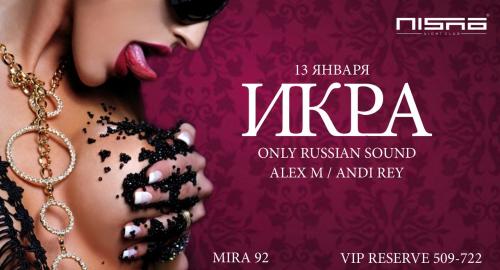 Красиво жить не запретишь, а мы и не запрещаем, а только приветствуем! «Икра» — это наш новый проект, который сопровождается отличным настроением и отборными танцевальными хитами, самых талантливых русских исполнителей. Ночь без ограничений в музыкальных стилях.