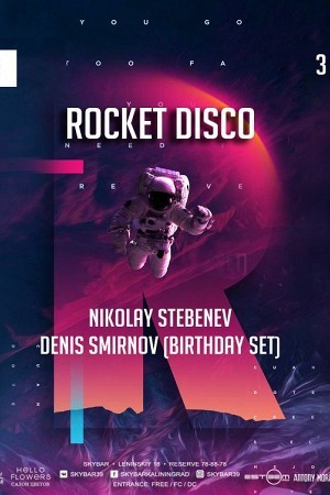 Уже в эту субботу мы вновь услышим предельно музыкальный проект «Rocket Disco»! За пультом соберутся великолепные диджеи — Nikolay Stebenev и Denis Smirnov, которые и подарят нам массу положительные эмоций своей музыкальной феерией! Кстати, в эту ночь у Дениса День рождения, повод это особенный, потому мы настоятельно рекомендуем лично послушать его праздничный сет!