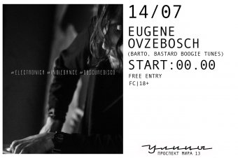 14 июля, суббота, свой dj-сет играет питерский музыкант, участник группы Барто и просто классный парень Евгений Овцебосх