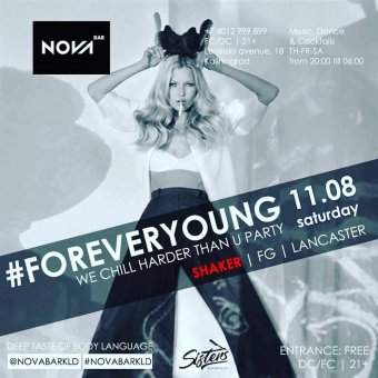 В эту субботу нас ждет самый модный и эпатажный проект Калининграда, и, конечно же, все заиграет яркой музыкальной феерией в NOVA BAR! За вертушками в эту ночь ваш любимый резидент проекта FOREVERYOUNG — DJ DENIS SHAKER, компанию ему составят — DJ FG, DJ LANCASTER. За вечную молодость и на брудершафт!