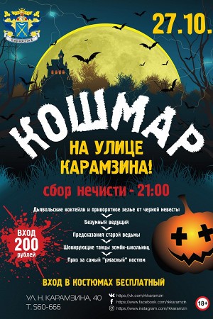 Друзья, вы помните, что близится самый жуткий праздник года? По этому поводу в следующую субботу, 27 октября, мы подготовили для вас бомбическую программу на вечер, а вас с нетерпением ждем в самых креативных костюмах! Балу нечисти быть!