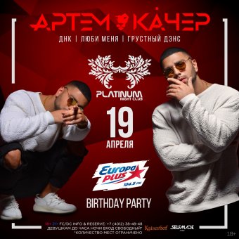 Европа Плюс Калининград и ночной клуб «Platinum» приглашают вас на долгожданный концерт Артёма Качера!