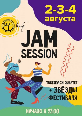 Для тех, кому всегда мало джаза — JAM SESSION в клубе Калининград Сити Джаз в дни фестиваля, сразу после окончания концертов на главной сцене! Собираемся в 23:00 и продолжаем танцевать в стиле джаз! А помогут нам в этом музыканты Turtsevich quartet и приглашённые звёзды фестиваля!