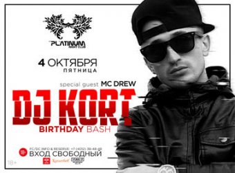 Открывает октябрь громкая вечеринка в честь дня рождения DJ Kort: огненный сет от именинника и MC Drew на микрофоне!