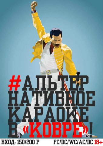 Ночь альтернативного караоке в «Ковре». Никакого Лепса и Стаса Михайлова, никакой Ваенги и Аллы Борисовны. Только молодость, только хардкор! Все песни бесплатно + комплимент от заведения за первые 15 песен.