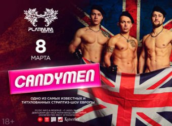 На сцене клуба «Platinum» шоу CandyMen — многократные победители чемпионата по мужскому стриптизу среди стран Балтии, СНГ и Европы.