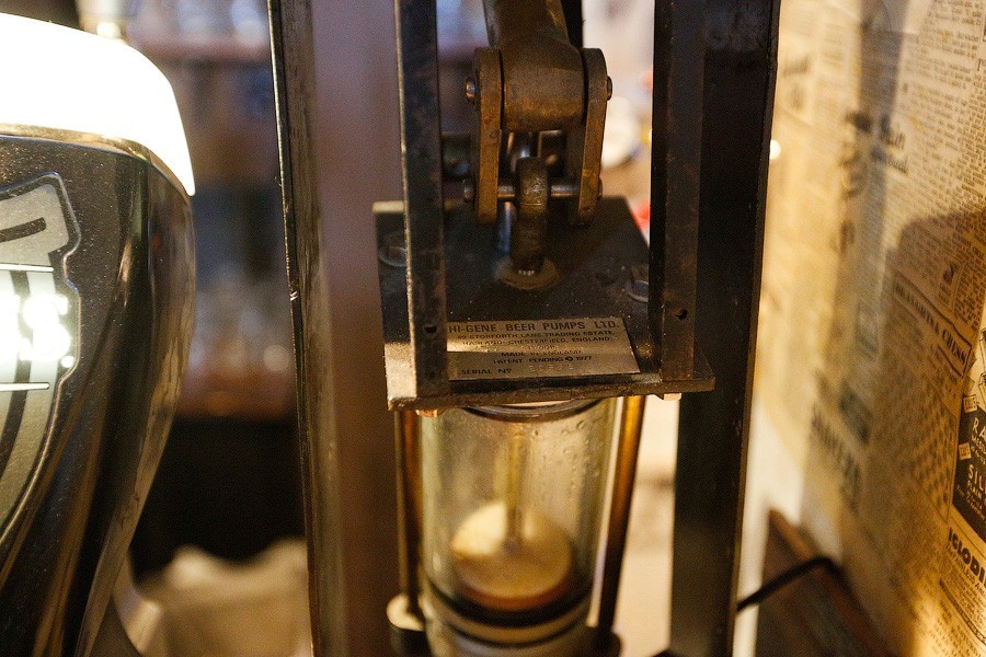 — Вот старые английские тарелки, на обратных сторонах которых есть надписи «Made in London» и «Made in Britain». Сегодня подобного уже не встретишь: всё в Китае делается, в Лондоне давно все производства закрыты. Вот, например, старинный английский ручной драфт, выкачивающий пиво из бочки. Сейчас везде уже автоматические стоят, а у нас ручной.