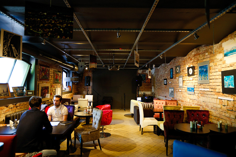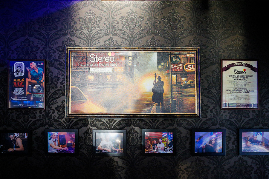 — У нас современный и понятный интерьер — городской, без изысков. Есть моменты, придающие уникальность — стенд с изображениями именитых гостей заведения, фотографии с вечеринок, на которых они выступали. Или картина с логотипом «Stereo Cafe», нарисованная местным художником.