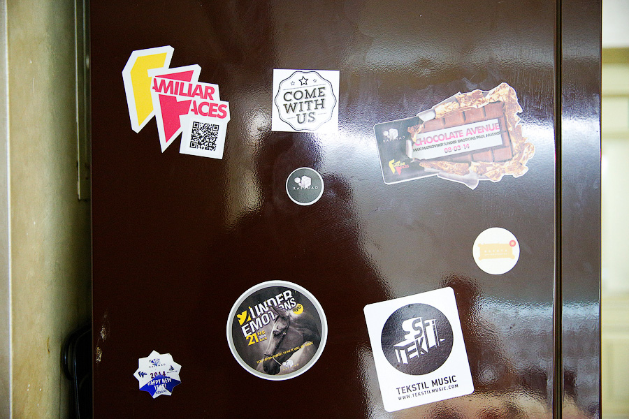 — Не место красит человека, а человек место, в общем. Максимум, что вас сможет заинтересовать у нас внутри — это множество наклеек и фотографий иностранных артистов, которых мы привозили.