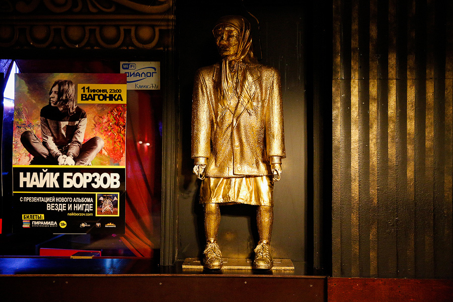 — Статуям из гипса, которые находятся в холле клуба, лет по 20–30 уже. Они очень старые. Бабушка изначально держала сетку с рыбой. Сначала исчезла рыба, потом сетка, а затем бабушка без рук осталась, превратившись в обладательницу крюков. У мужика со стаканом ничего не отнимают никогда. Видимо, уважают. Девушка с веслом — это стилизация под скульптуры, которые в советское время украшали парки культуры и отдыха, и ей традиционно больше всех достаётся: вдоль и поперёк вся переклеенная и заклеенная, голова еле держится. Летом мы собираемся её реставрировать, потому что она своеобразный фаворит у тусовщиков — c ней постоянно фотографируются. Мы постоянно чиним фигуры, приделываем бабушке руки обратно…. Но они всё равно исчезают.