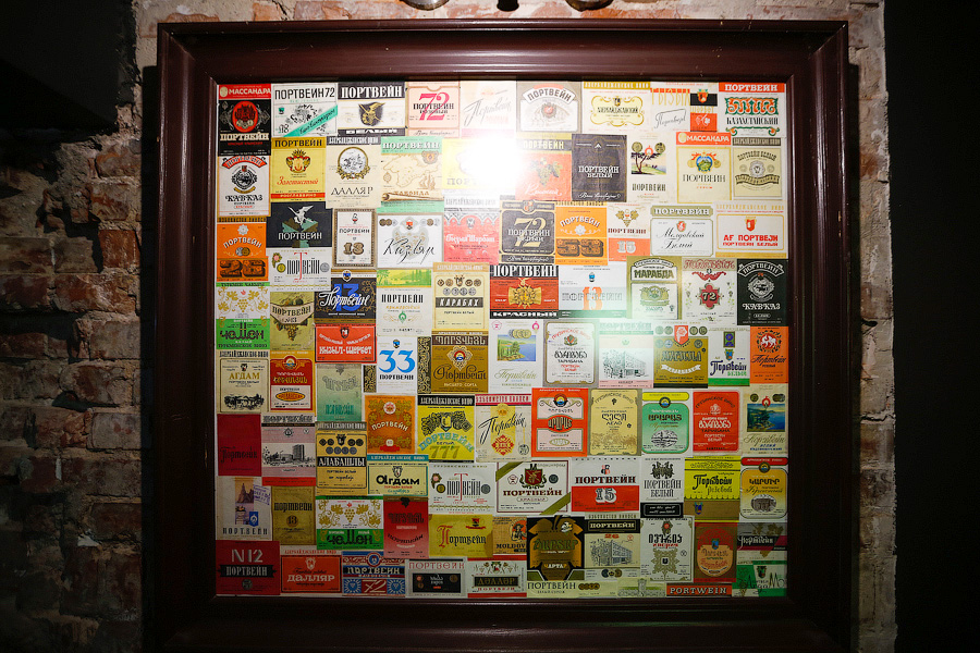 — Ещё здесь есть коллекция этикеток от портвейнов, выпускавшихся в Советском союзе в разное время. Она досталась нам от родственников владельцев клуба. Причём это настоящие этикетки, а не распечатанные.
