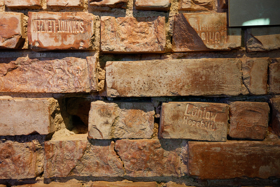 — Обратите внимание на кирпичные стены, оставшиеся здесь ещё с немецких времён, подтверждением чему служат надписи с названиями изготовителей на кирпичах. Сейчас уже такого на кирпиче не пишут, а тогда это было в порядке вещей. Вот, например, надпись завода «Schmidt — Lenzen», который, насколько мне известно, находился в Эльблонге. Из их кирпича были выстроены подвалы Королевского замка. Получается, у нас есть связь с замком. Или надпись «Luniow Hopehill». Кирпич на этом заводе производился до Второй мировой войны. Я такой видел в Гданьске и Эльблонге.