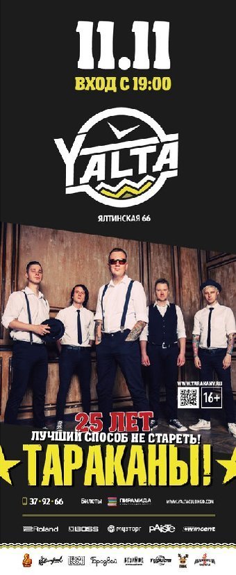 Весь 2016 год московская рок-группа «Тараканы!» отмечает свое 25-летие! На концерты «Тараканов!» приходят люди разного возраста и социального положения. Юные зрители ныряют в слэм, так же как это делали двадцать лет назад их родители, теперь с комфортом взирающие на происходящее с VIP-трибун. История «Тараканов!» — это «свой среди чужих» и «чужой среди своих». Это философия, напрочь отвергающая любые рамки и условности, и в первую очередь — рамки, воздвигнутые той субкультурой, из которой группа когда-то вышла.