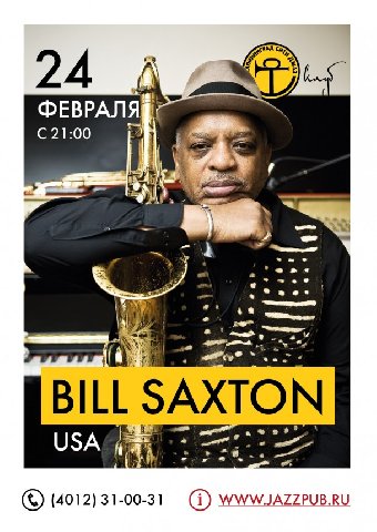 Легендарный музыкант Билл Сакстон — это сочетание фантастического ритма, безудержной экспрессии и очень узнаваемого звука. Он успел отметиться в записи с такими джазовыми гигантами как Рой Хейнс, Джеки Маклин, Кларк Терри, Нэнси Уилсон, оркестра Дюка Эллингтона. Его саксофон умеет разговаривать, причем на всех языках.