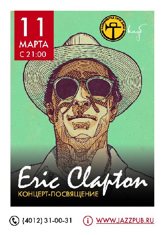 Eric Clapton — с гитарой против всего Мира. Ждем вас в субботу вспомнить будоражащий вкус настоящей музыки в исполнении блестящих музыкантов — настоящих ценителей творчества Мастера.