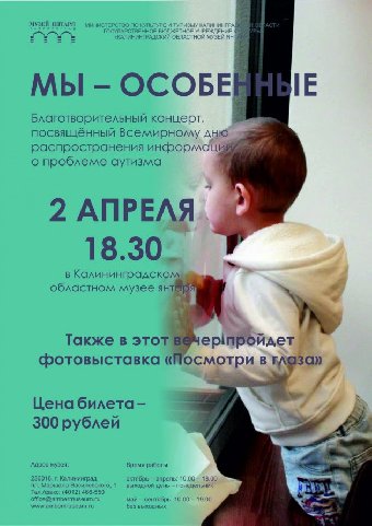 Также в концертном зале пройдет выставка фотографий детей с аутизмом. Ее название «Посмотри в глаза» глубоко символично. Многие такие дети не выдерживают зрительного контакта,