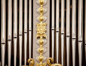 За органом — музыкант, органист, профессор Канзасского Университета Джеймс Хигдон (США)