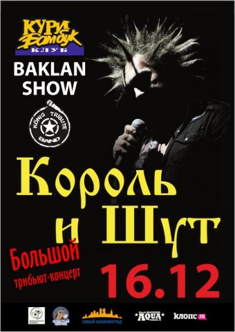 В клубе «Бамбук» состоится большой концерт, завершающий этот год, — трибьют-шоу группы «Король и шут». Для него есть ещё один замечательный повод — день рождения Александра Baklan Баканова. Вас ждут 36 самых жарких и хитовых песен и отрывок из зонг-оперы «TODD».