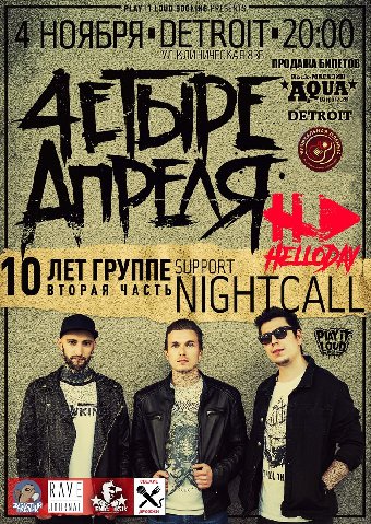 В общем пока Апрели полируют гитары и тянут струны — готовьте голоса, повторяйте текста и конечно приобретайте билеты, создадим неповторимую атмосферу живых шоу вместе.