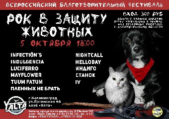 Фестиваль «Рок в защиту животных» — всероссийская благотворительная акция, проходящая одновременно в различных регионах России и приуроченная ко Дню защиты животных (4 октября). Цель проведения фестиваля — привлечение внимания к проблеме защиты животных, информационное просвещение населения, материальная помощь приютам и зоозащитным организациям путём передачи денежных средств от концертных сборов, благотворительной торговли, добровольных взносов и пожертвований участников фестиваля.