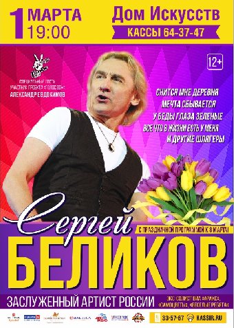 В концертном зале Дома искусств пройдет большой сольный концерт Сергея Беликова, который сотрудничал с В. Добрыниным, А. Дербеневым, и обзавелся хитами «Живи, родник», «Снится мне деревня», «Не могу забыть».