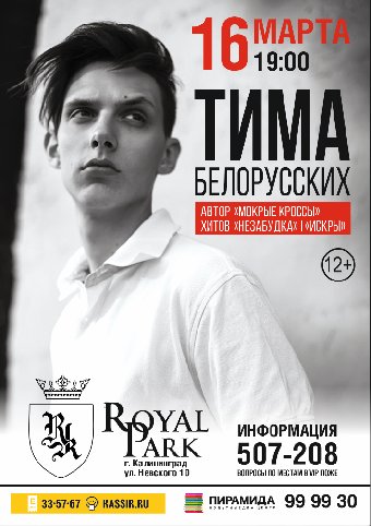 16 марта в Калининграде на сцене мультиформатного зала «ROYAL PARK» развлекательного комплекса «Резиденция Королей» со своим концертом выступит рэпер Тима Белорусских.