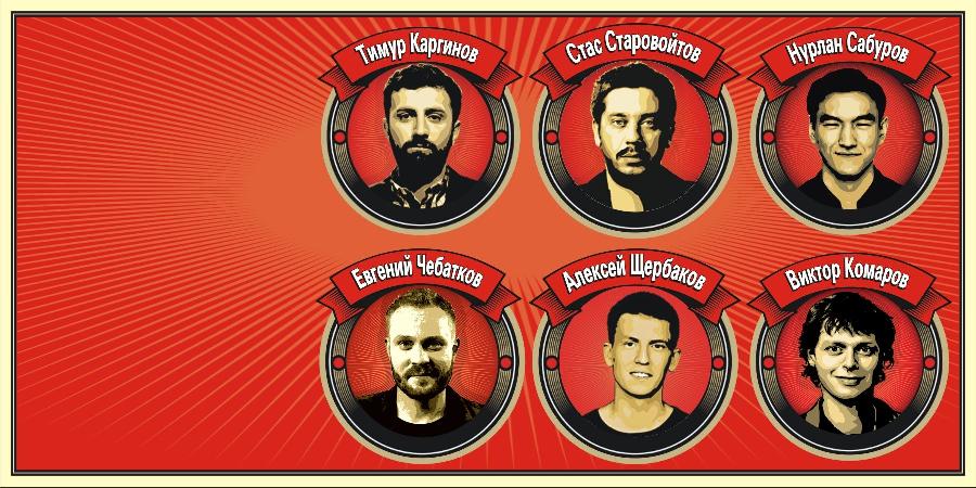 В этот вечер для вас выступят: Нурлан Сабуров, Стас Старовойтов, Алексей Щербаков, Тимур Каргинов, Виктор Комаров и Евгений Чебатков. Новая программа выступления содержит интеллектуальные шутки, интересные рассказы из жизни.