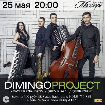 DIMINGO — проект резидентов FRIJAZZ BAND, который объединил популярную музыку 60-90 хх годов XX века, лучшие джазовые традиции и элементы рока в народном ключе. Это необыкновенный колорит и оригинальная, созвучная русской душе подача музыкального материала — сочетание контрабаса и баяна.