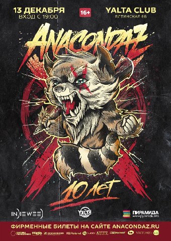 13 декабря мы решительно намерены собрать всех калининградских любителей pauzern-рэпа в стенах клуба «Yalta»! Х лет Anacondaz! Отпразднуем максимально громко, шумно, оглушительно! Ну а как иначе, друзья?