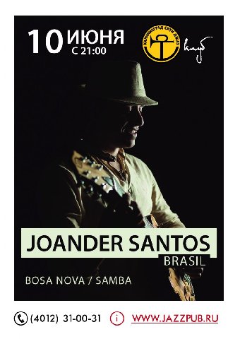 В начале июня, Россию впервые посетит уникальное бразильское трио Джоандера Сантоса (Joander Santos) — одного из самых ярких молодых вокалистов и гитаристов Сан-Паулу и Рио-де-Жанейро.