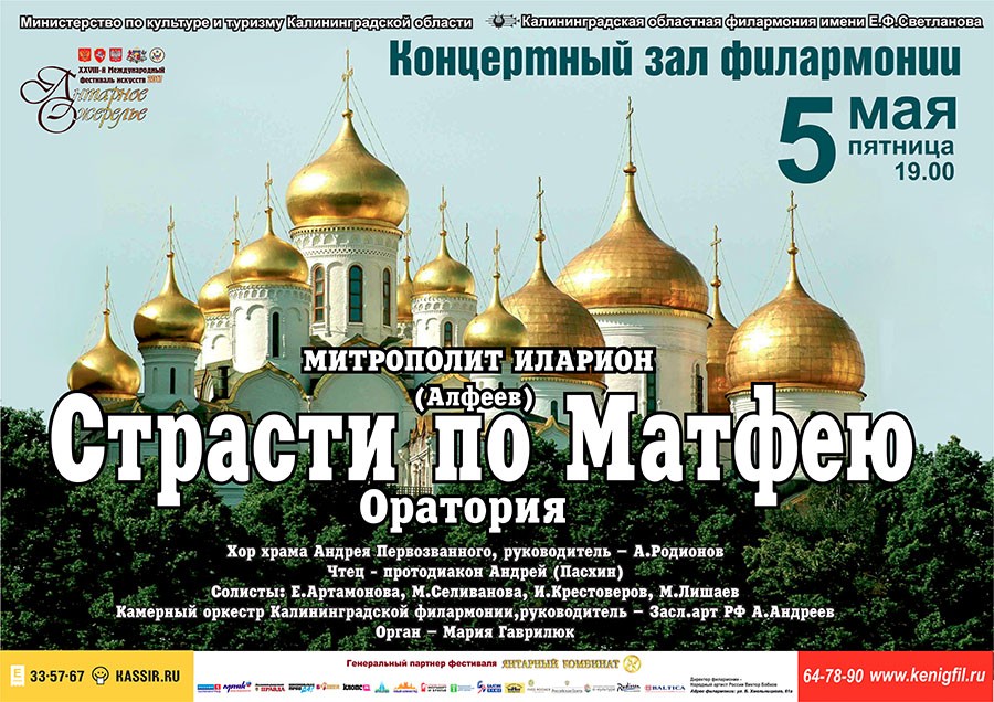 5 мая в рамках международного фестиваля «Янтарное ожерелье» в филармонии прозвучат «Страсти по Матфею» митрополита Илариона.
