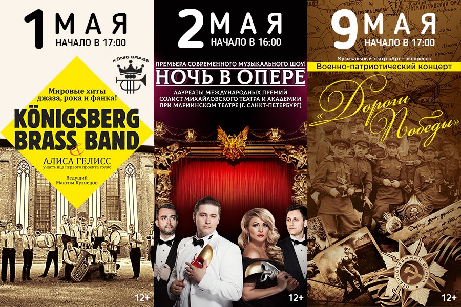В День Победы 9 мая в стенах «Янтарь-холла» будут звучать песни военных лет, послевоенного времени и из репертуара великого поэта и композитора Владимира Высоцкого. Театр музыкальных представлений «Арт-Экспресс» - это 20 молодых и талантливых артистов, способных сотворить на сцене настоящее чудо. Каждый артист театра имеет профессиональное вокальное и хореографическое образование, многие из них имеют большой опыт работы в творческих коллективах России и зарубежья.