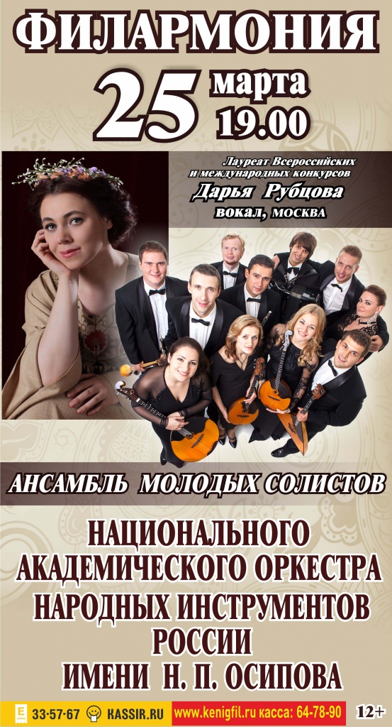 25 марта в 19 часов не пропустите встречу с молодыми московскими виртуозами, представителями одного из самых известных творческих коллективов страны — Национального академического оркестра народных инструментов России им.
