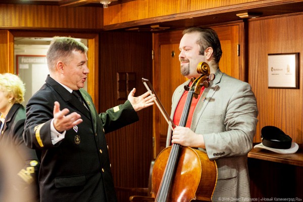 В субботу, 19 ноября, российско-американский виолончелист Борислав Струлёв дал небольшой концерт в одной из кают-компаний барка «Крузенштерн». Послушать музыканта собрались журналисты и члены экипажа судна. Как это было, запечатлел фотокорреспондент «Афиши Нового Калининграда.Ru»