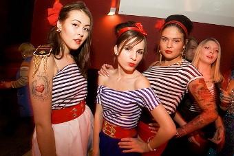 Вечеринка эта первый раз состоялась в прошлом году, тогда же и была задумана, как морской карнавал. Вообще любые тематические вечеринки с дресс-кодом - это всегда здорово и ярко. Самая лучшая мотивация одеться соответствующим образом - вовсе не жёсткий фейс-контроль на входе, а осознание того, что если ты оденешься как-то иначе, то будешь себя чувствовать, как человек в спортивном костюме на светском балу, категорически выбиваясь из всеобщей атмосферы праздника. Поэтому практически все посетители "Портового угара" применили максимум фантазии - разглядывать публику было практически также интересно, как во время Хеллоуина.