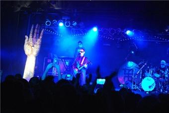 Зал буквально взрывался аплодисментами, когда узнавал по первым аккордам любимые песни — «Из мышеловки», «Фетиш», «Кукла с человеческим лицом», «Немного огня», «Великан», «Иероглиф» и, само собой, «Фиолетово-черный». При исполнении «Египтянина» Шклярский, достал свой «новоегипетский инструмент» (тот, который был придуман самим музыкантом) и извлекал из него неподвластные обычной электронной гитаре звуки. После этого музыкант еще несколько раз поражал зрителей необычными инструментами — чего стоит хотя бы электронная арфа, которую девушка вынесла на сцену на голове. И все это периодически сопровождалось настоящим спектаклем: танцующие одноглазые куклы, люди на ходулях в пугающих масках и беснующийся шаман с бубном. Все два с лишним часа в зале разливалась атмосфера чего-то потустороннего и такого непостижимого, как загадочные иероглифы на гигантской руке.